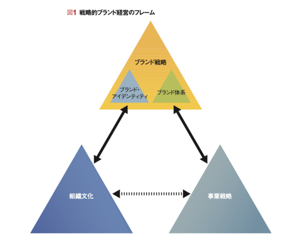 筆者らが提唱する戦略ブランド経営は、図1「戦略的ブランド経営のフレーム」に示されているように、組織文化と事業戦略、そしてブランド戦略の3つの要素からなっている。