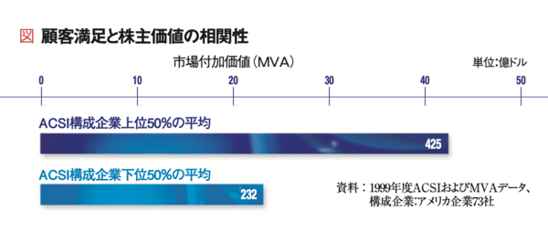 以上のようにACSIに注目すると、顧客満足と市場価値には、統計上、きわめて高い相関性があることが理解できる。
