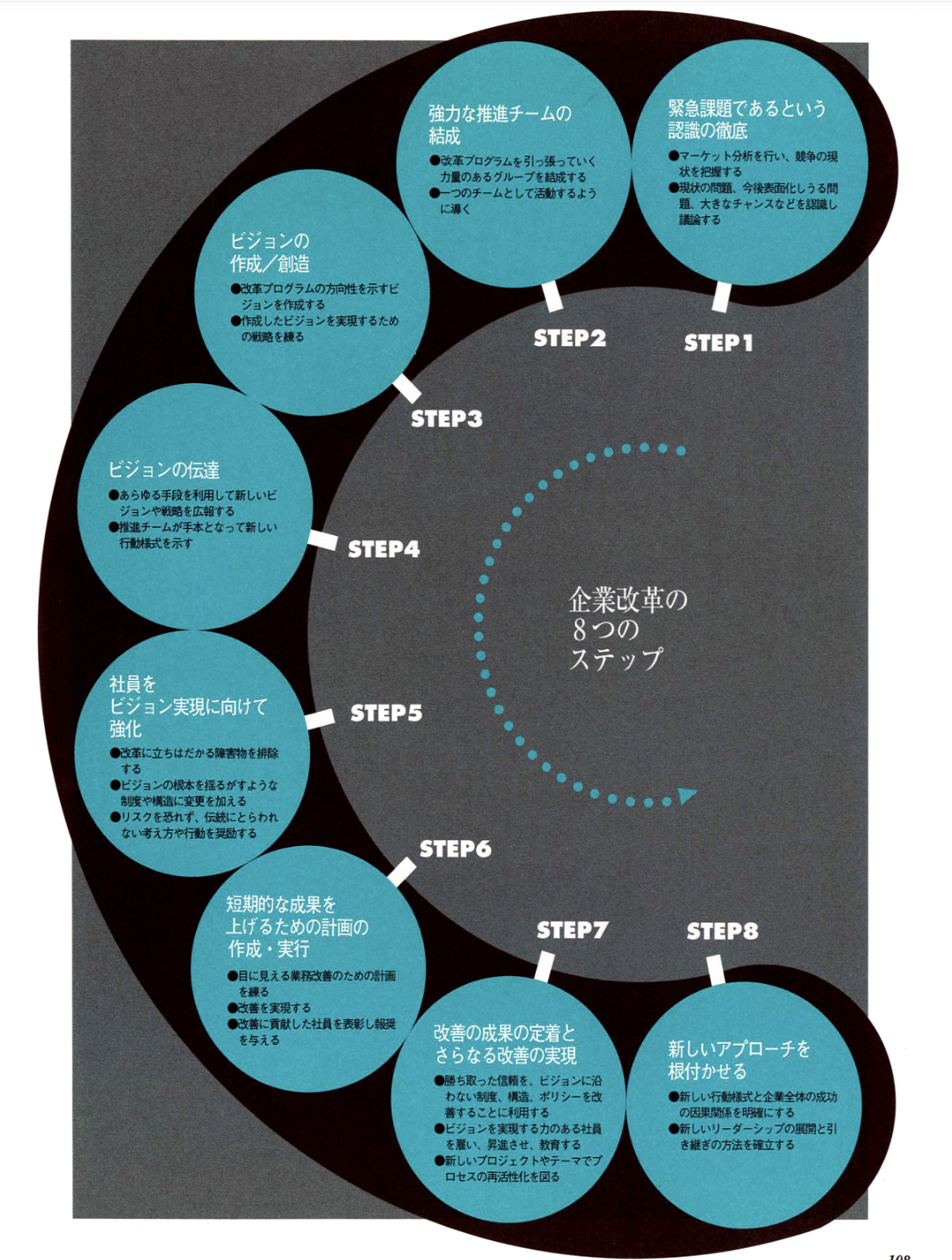 私はこの10年間というもの、より競争力のある会社に生まれ変わろうと努力する企業を100社以上、見守ってきた。その100社の中には、大会社(フォード)もあれば、小さな会社(ランドマーク・コミュニケーションズ)もあった。アメリカに本拠地を置く会社(ゼネラル・モータース)もあれば、そうでない会社(ブリティッシュ・エアライン)もあった。また、倒産寸前の会社(イースタン・エアライン)もあれば、十分な収益を上げている会社(ブリストル・マイヤーズ・スクイブ)もあった。それぞれの会社により、改革の呼び方は実にさまざまなものがあった。トータル・クオリティ・マネジメント、リエンジニアリング、ライトサイジング、リストラクチャリング、カルチャー改革、ターンアラウンドなど。しかし、ほぼすべてのケースにおいて基本的なゴールは共通している。それは、より競争の激しい新しい市場環境に対応していくため、ビジネス・プロセスに抜本的な改革を行うことである。