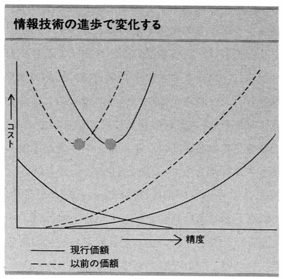 また最適コスト・システムとは、いわば動く標的のようなものである。競争条件が変動する以上、過誤のコストも変化する。同様に、情報処理技術が変化すれば、測定コストも変動する。