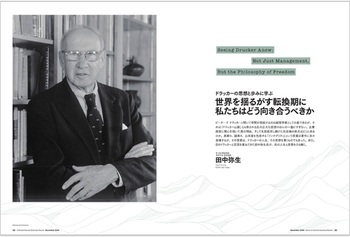 この節目に“ドラッカー特集”を組むに当たり、まず、私たちがドラッカー教授の教えに立ち返るとすれば、どういう切り口がよいかを考えました。その時に出てきたのが、「インテグリティ」というキーワードです。現在、この言葉に立ち返りたくなるような世界を分断するさまざまな出来事が起きています。そこで、インテグリティを軸にして、「ドラッカーの思想」をもう一度解釈してみようと考えました。