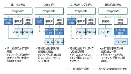スムーズにアナリティクス組織を立ち上げ、定着させるためには、いわゆる組織論に従い、事業戦略や風土を考慮した組織とする必要がある。コンサルティング型の大阪ガスの運営形態は成功事例の一角に過ぎない。ただし、成功企業の組織形態はいずれも、何らかの形で人材・知見を集約していることを忘れてはならない。技術進歩が著しく、人材もノウハウも不足しがちなアナリティクスという領域においては、社内の知見を集約することこそが他社との差別化を生み、競争優位に立つためのカギなのだ。