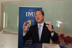 IMDのエグゼクティブ・プログラムOWPに招聘され、基調講演を行う志賀氏。日産の一連の改革にまつわる話に、参加した30カ国130人の企業幹部から質問が相次いだ。