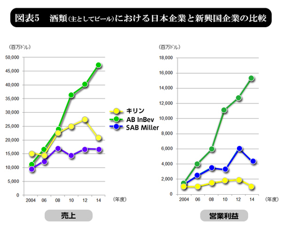 この市場では世界トップ企業のアンハイザー・ブッシュ・インベブの源流はブラジル企業であり、2位のSABミラーも南アフリカ発祥で、新興国企業の血脈が世界を制しつつある。両社とも本社を欧州に移転しているが、その出自は純粋な新興国企業である。