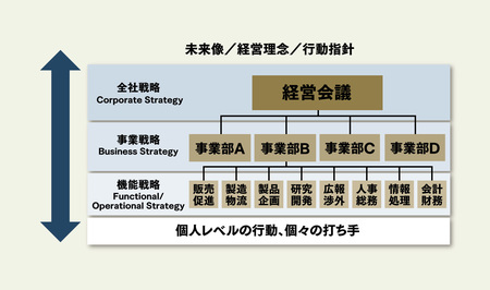 図4:全社戦略、事業戦略、機能戦略の伝統的な階層