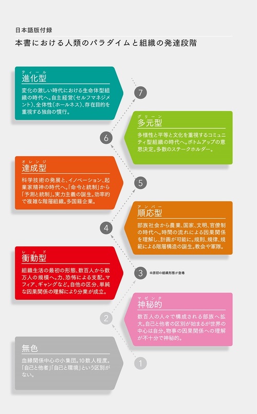 入山:そのスケール感、わかります。私は読み始めてまず驚いたのが、冒頭の組織の発達段階の図です。著者が「人間の意識は時代とともに変化する」ことを前提に議論しているのが特徴的で、「進化心理学」という人間の感情や行動の進化を解明する学問領域のことを思い出しました。