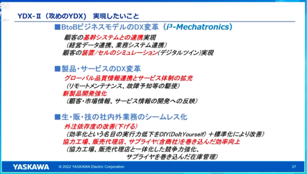 YDX-Ⅰにより人・組織の改革が進められた同社であるが、今後推進していくべきYDX-Ⅱの注力事項には「BtoBビジネスモデルのDX変革」「製品・サービスのDX変革」「生・販・技の社内外業務のシームレス化」などが挙げられる。