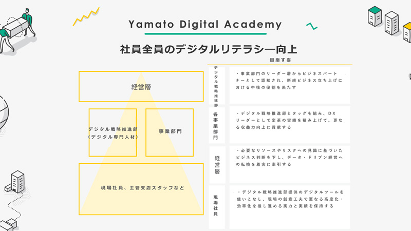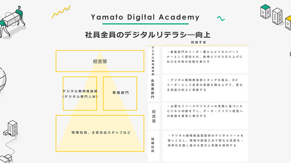 「デジタル専門人材と事業部門ではデータに対する理解度が異なります。事業部門のリクエストに応えていくことは、事業部門のデータに対する理解度を上げていくことにもつながっていくと考えています。デジタル専門人材だけのデータの理解度が高くても、成果は出せません。そのため、ビジネスを生み出す事業部門や社員全員のデジタルリテラシーの向上を目的に教育プログラム『Yamato Digital Academy(ヤマトデジタルアカデミー)』を開始しました」(中林氏)